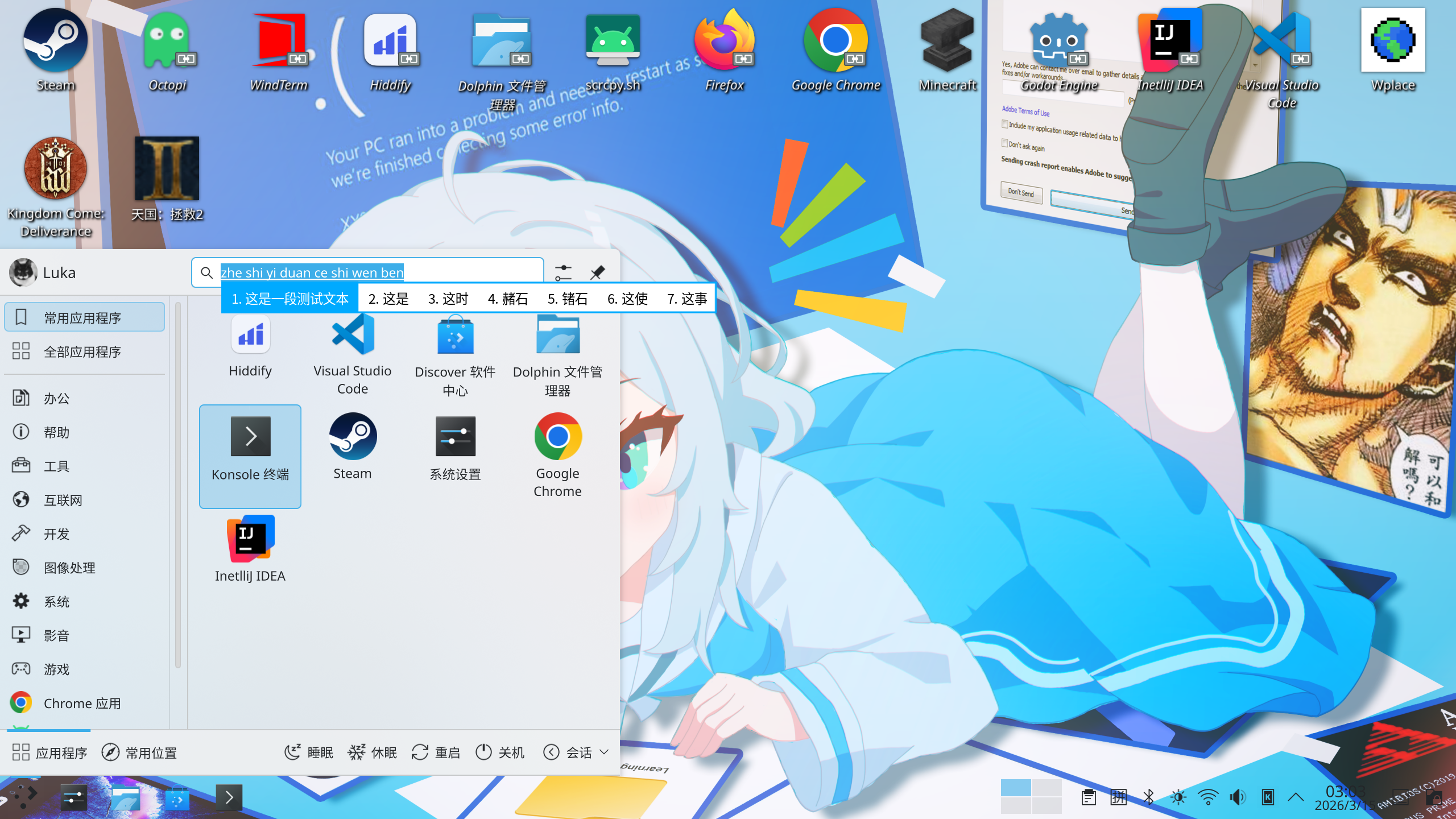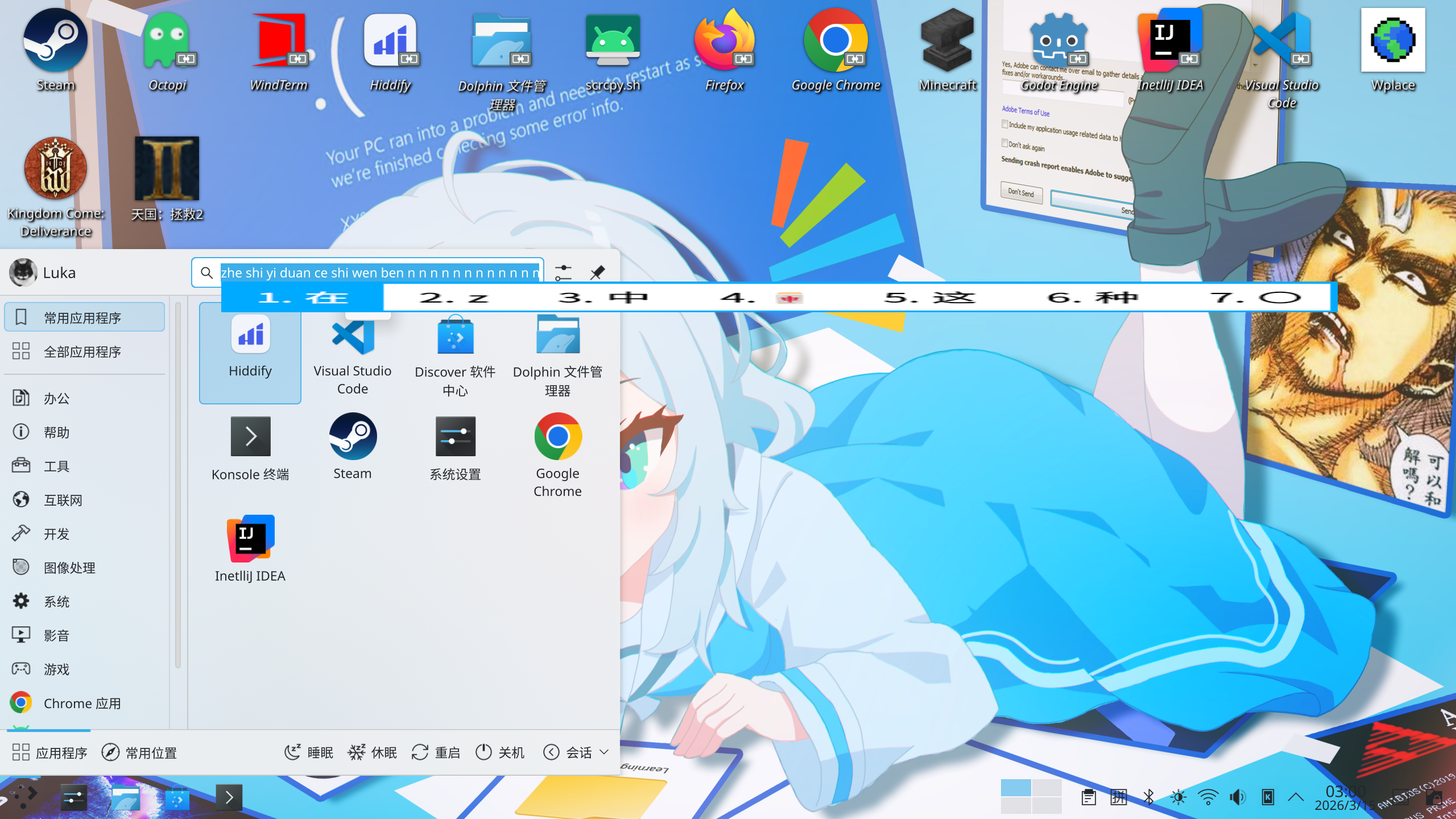 在KDE Wayland桌面环境中,可能遇到Fcitx5输入法候选框异常的拉伸问题,在开始菜单的搜索框输入中文时,候选弹窗会出现横向拉伸、文字变形、显示错误的情况。